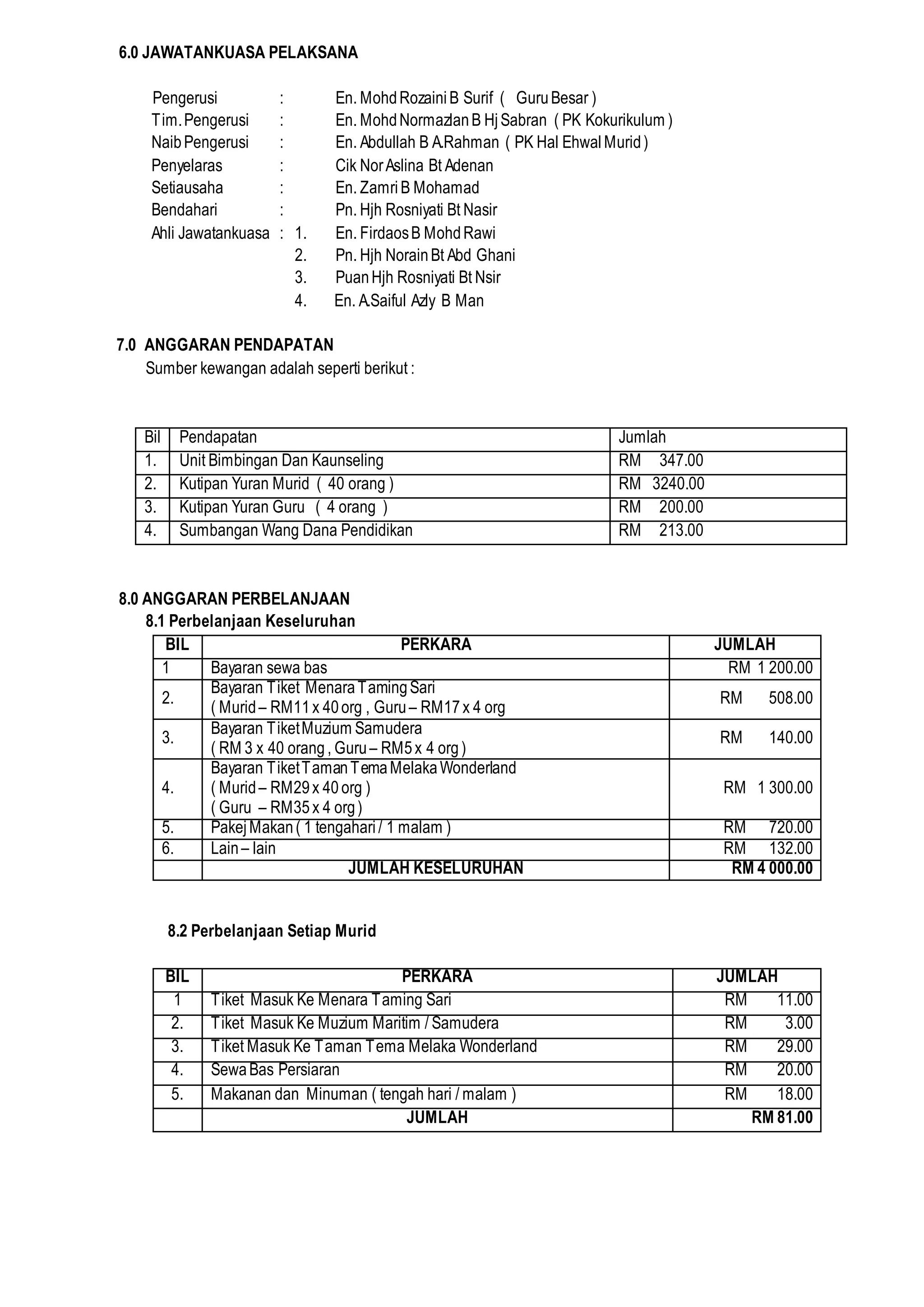 KERTAS KERJA CADANGAN PROGRAM LAWATAN SAMBIL BELAJAR MURID.