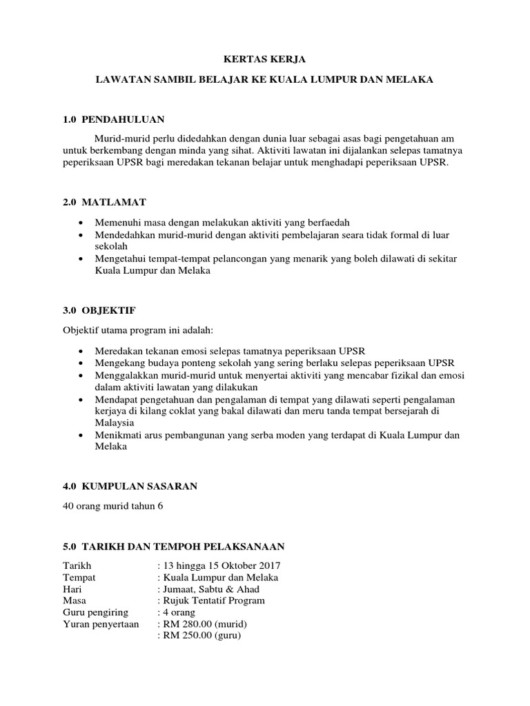 Kertas Kerja Lawatan Kl Melaka Pdf