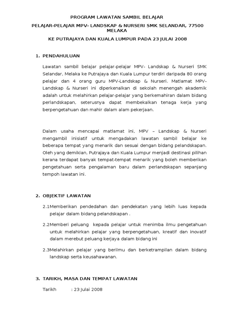 Kertas Kerja Lawatan Sambil Belajar Pdf