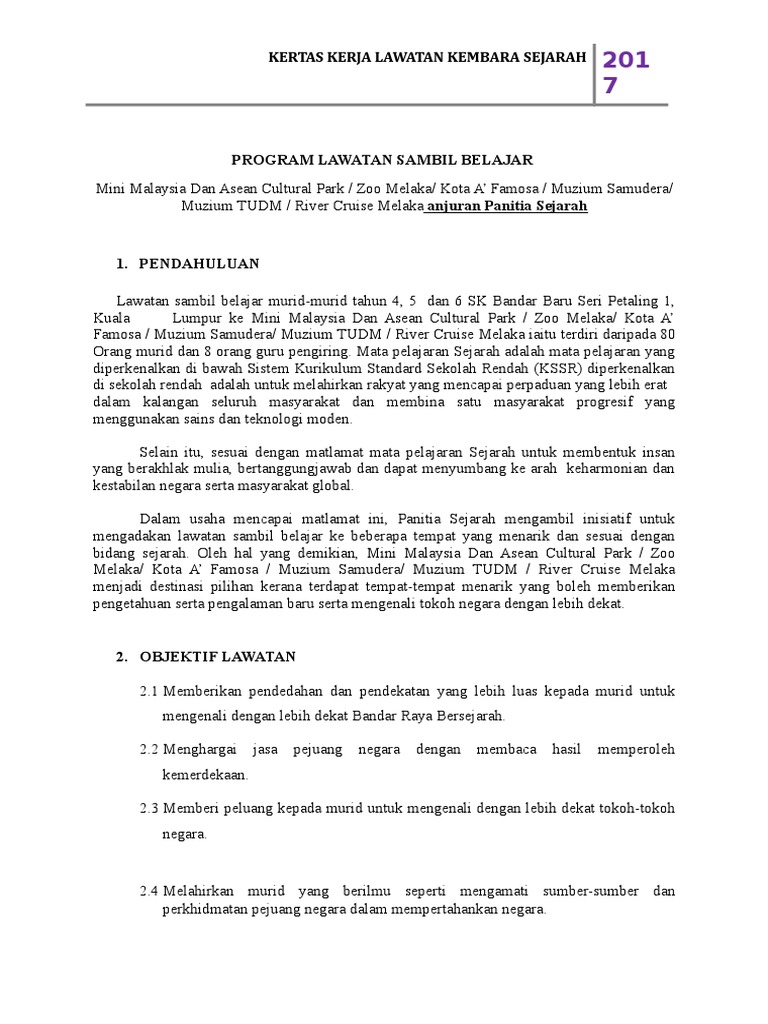 Contoh Kertas Kerja Lawatan Ke Muzium Negara Pdf